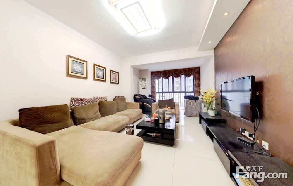 房子是标准小套三,客厅带阳台的,进门有入户门厅,算得上是双阳台户型。