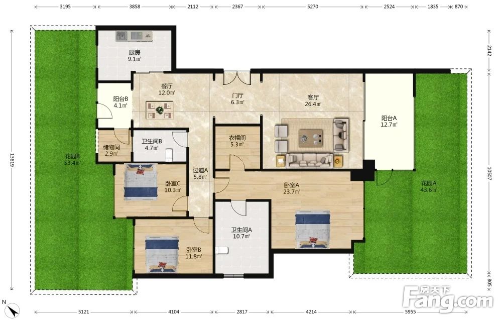 西派城B区 带大花园 精装修 户型方正