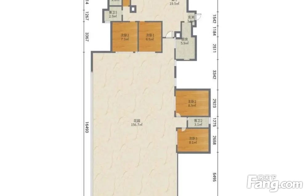 2:南北向,小区中庭位置,私密,采光好,客厅带大花园,房间面积舒适。