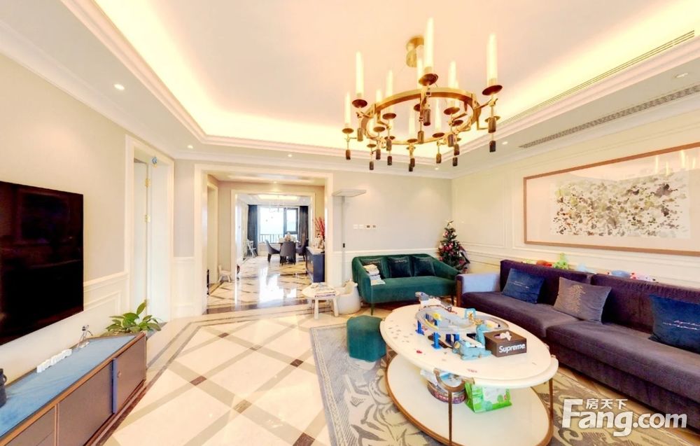 开发商统一装修,基装标准6000每平,德国威能地暖,杜拉维特卫浴,西门子冰箱,欧派橱柜,美国特灵空调。客厅大理石,卧室实木地板。