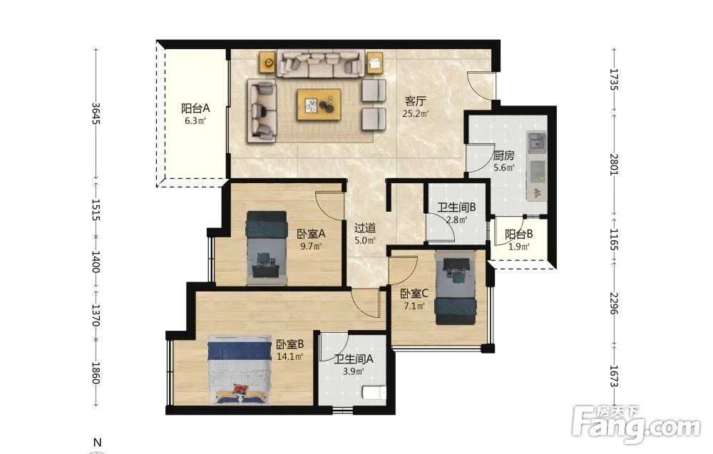 3室1厅2卫