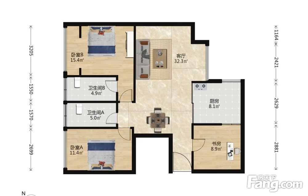 3室1厅2卫