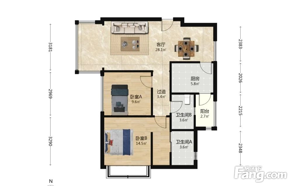 2室1厅2卫
