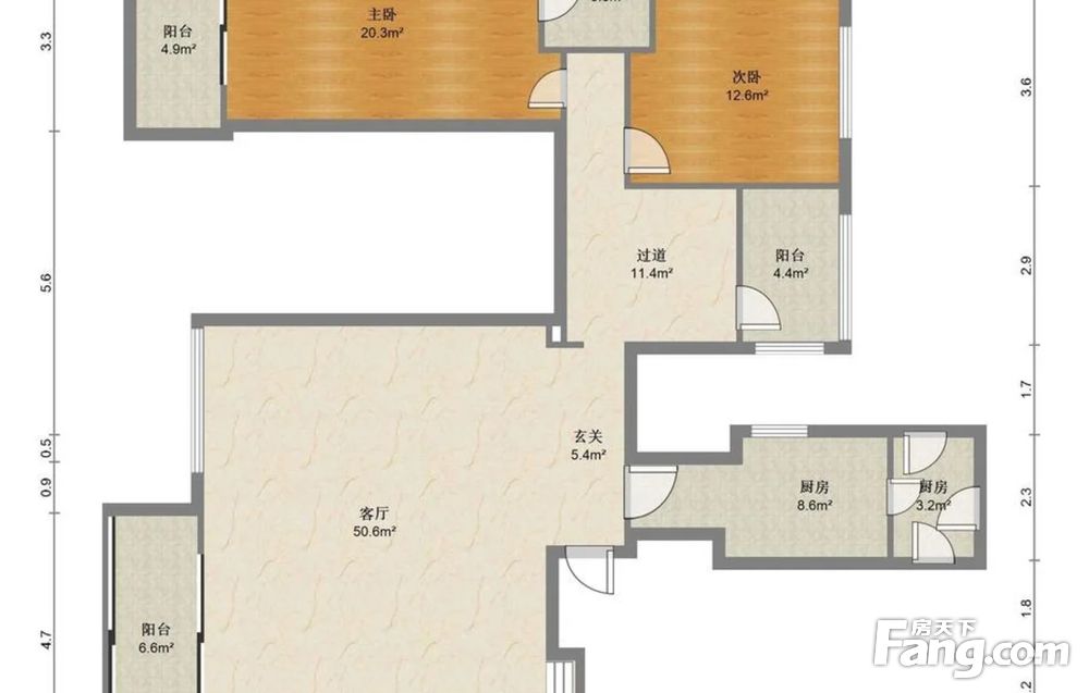 2:面积154.92平,实得210平,无浪费空间,空间感宽阔。