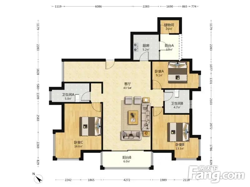 天合凯旋城 3室1厅 126.8平