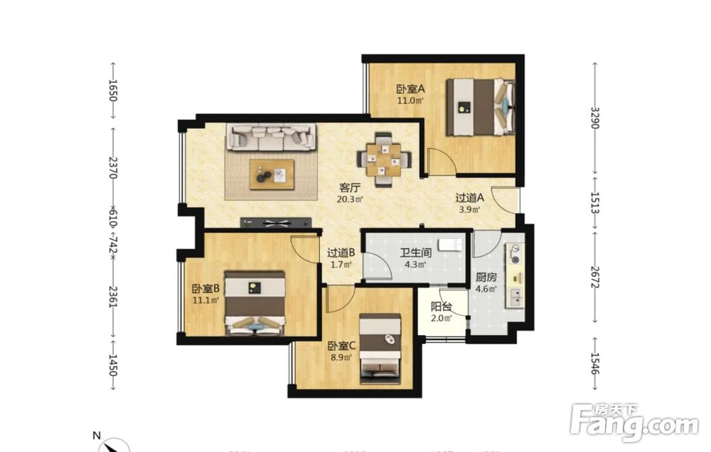 合能四季城一期 3室1厅 西北