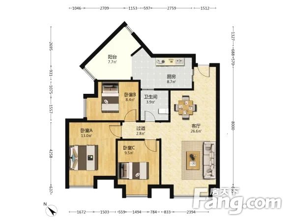 • 当前房源报价为:131.00万