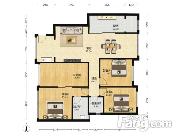 世茂城二期 4室2厅 南 北