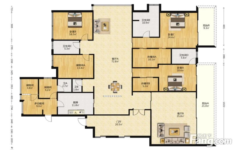 万科金色海蓉三期 5室2厅 东南