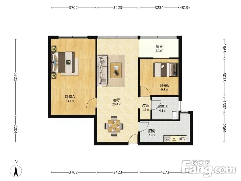 户型介绍房子目前是两室一厅一厨一卫户型,房子户型方正,利用率比较好,简单装修并且保养不错
