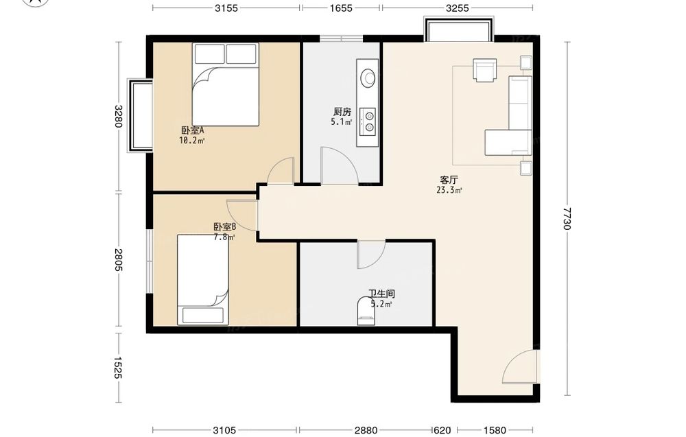 经典坐标 2室1厅 东南