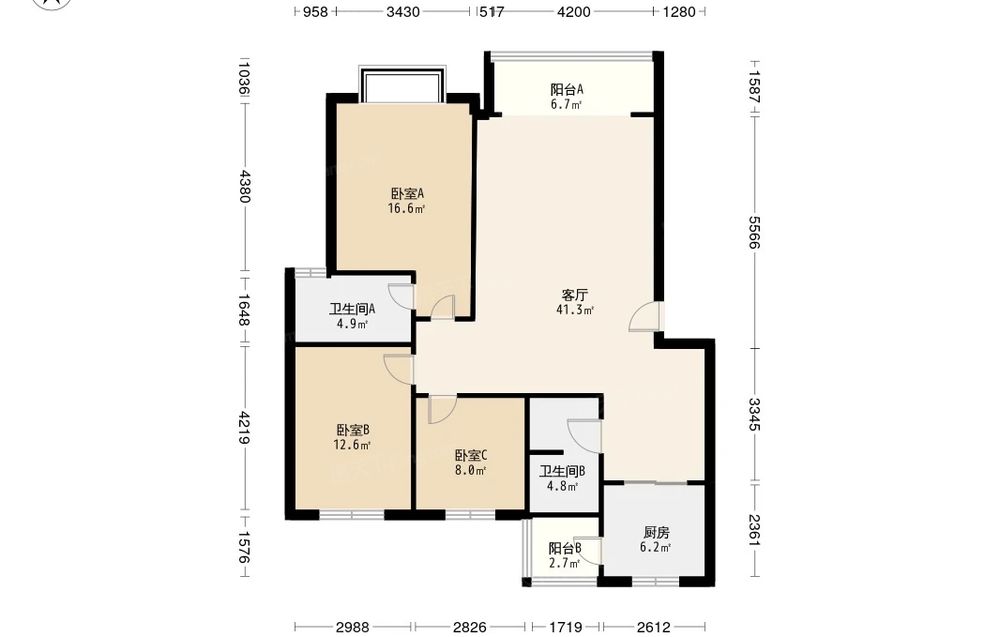 天益佳苑 3室1厅 东南