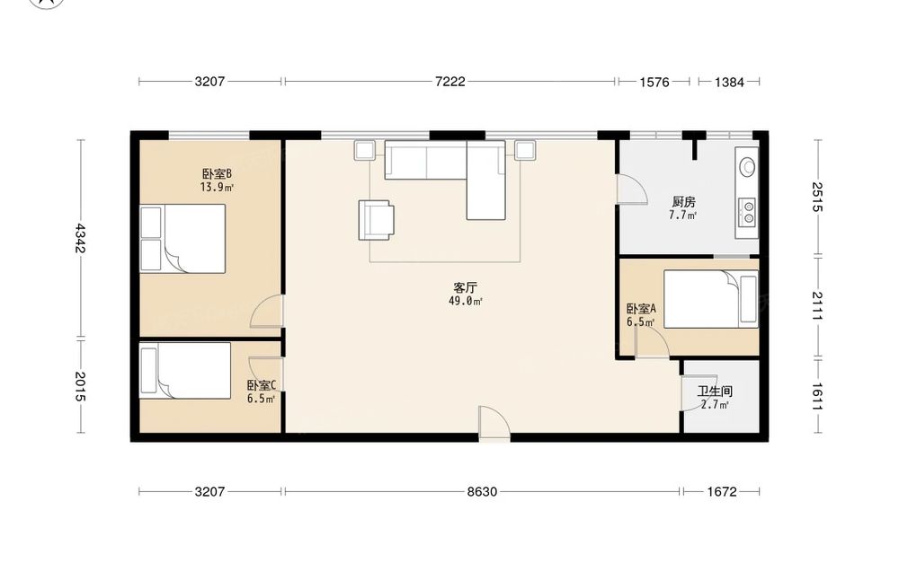 雅图丽景 3室1厅 东