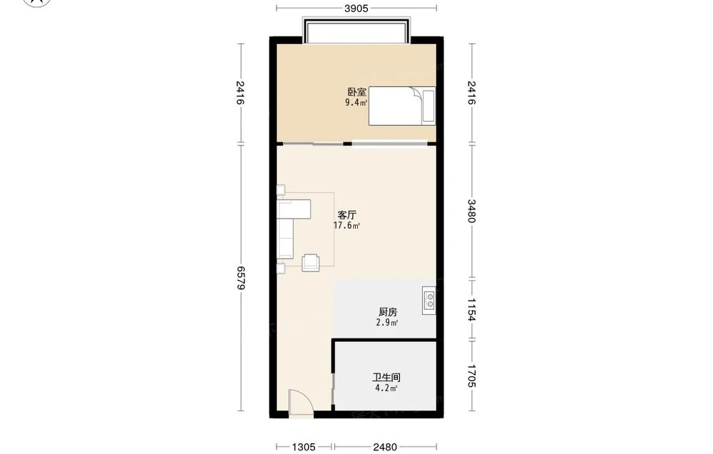 大地新光华广场 1室0厅 南