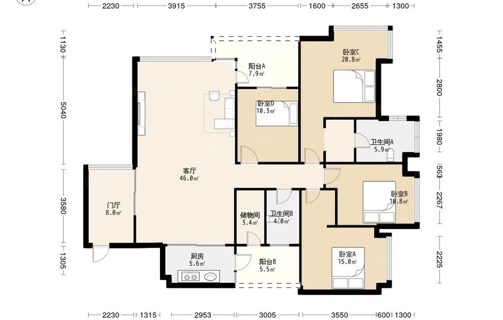 中海格林威治城 4室1厅 东南 东北