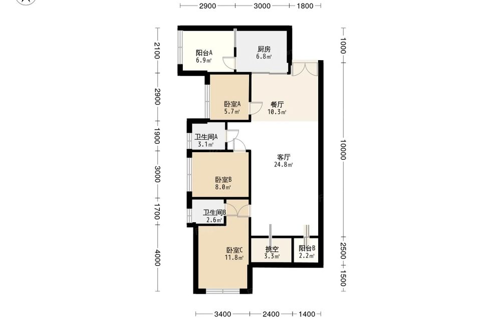 三里花城 3室2厅 西南