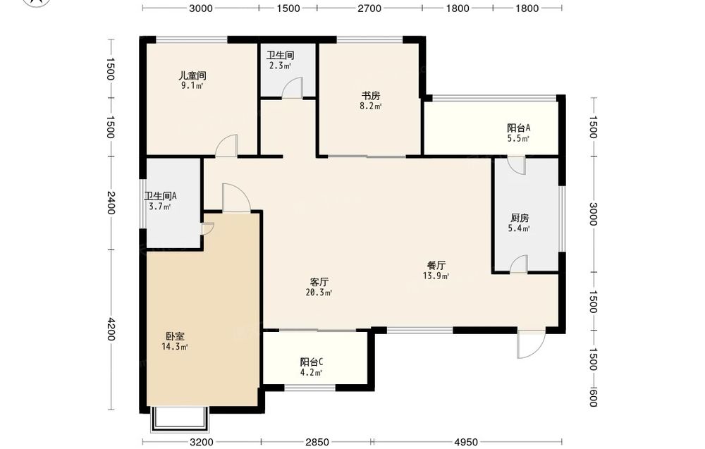 寰宇君汇城 3室1厅 东南