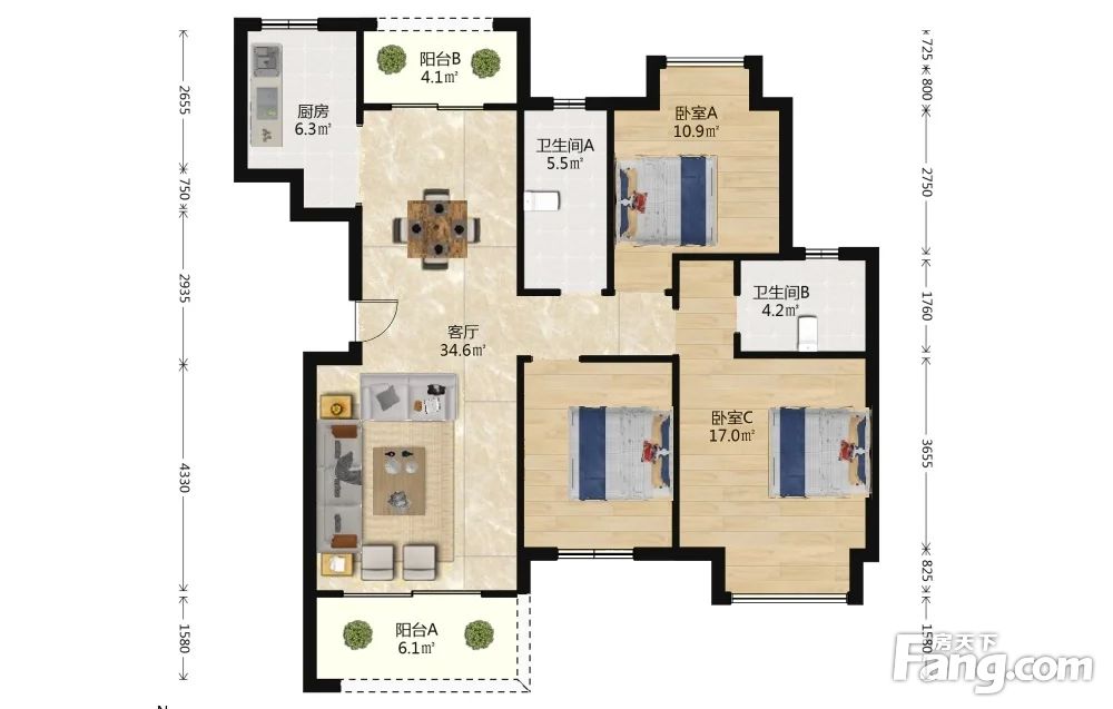 保利两河森林 3室2厅 南