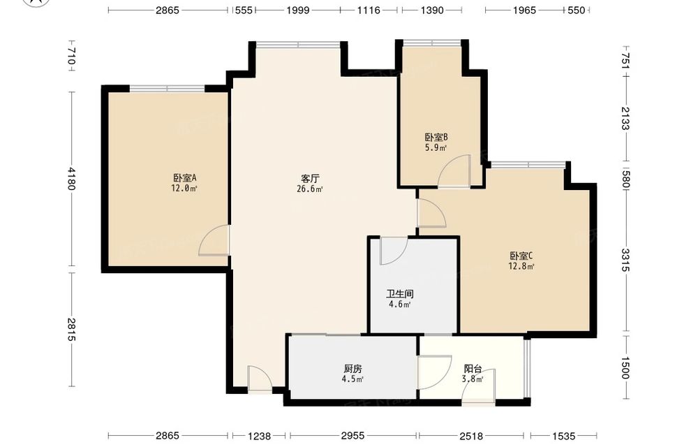 • 当前房源报价为:155.00万