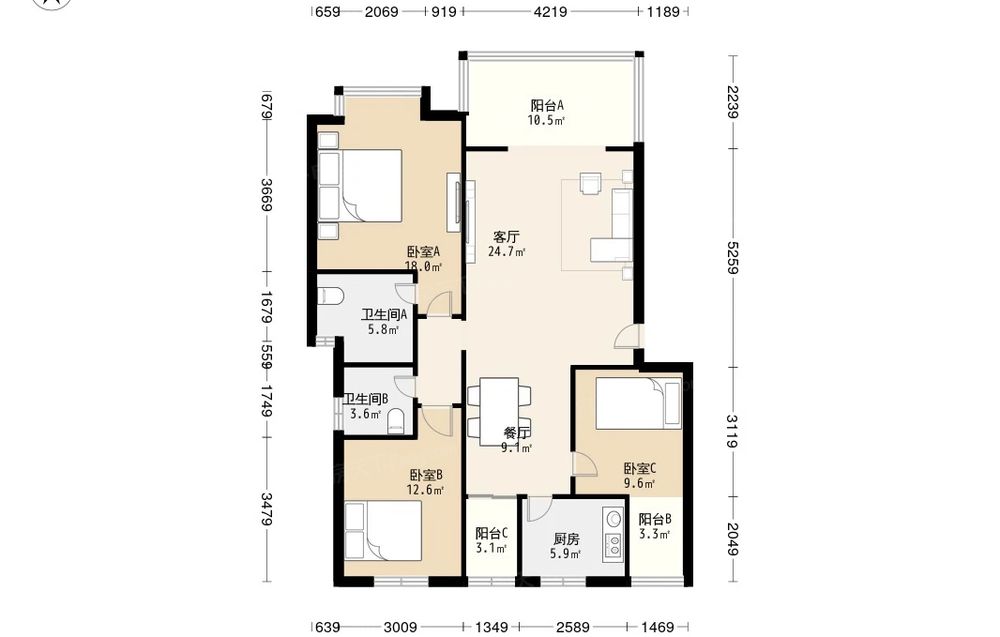 翰香府 3室2厅 南