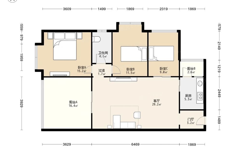 正成名城左岸 3室2厅 西南