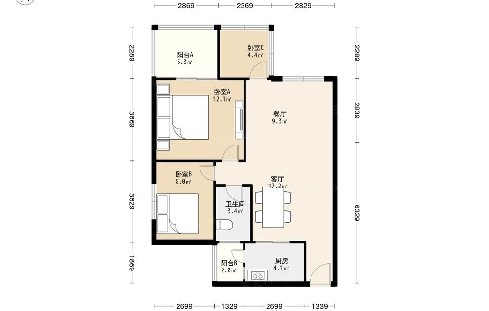 • 当前房源报价为:69.00万