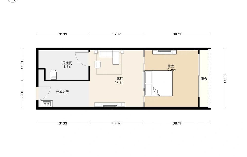 壹号公馆 1室1厅 西北