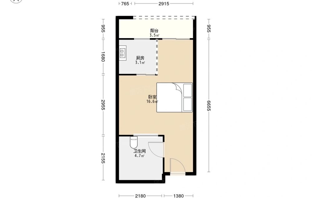 天合凯旋港 1室1厅 北 东