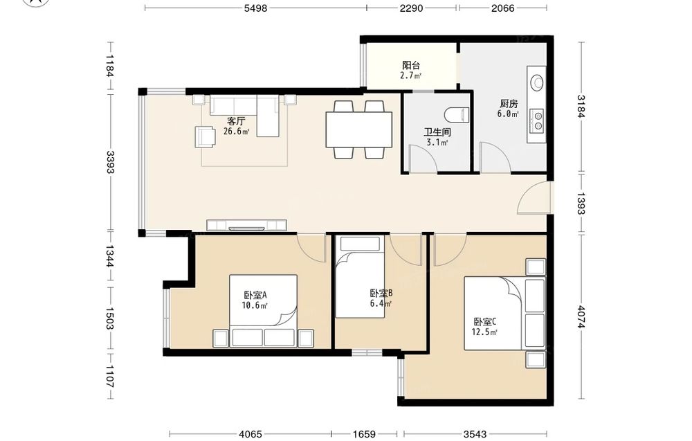 • 当前房源报价为:118.00万