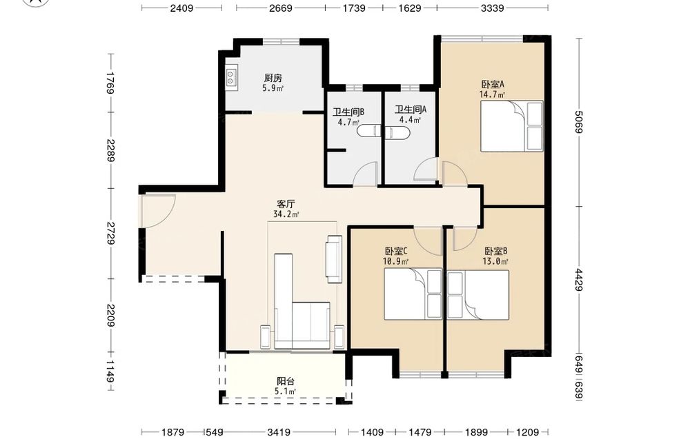 天府欧城 3室2厅 东南