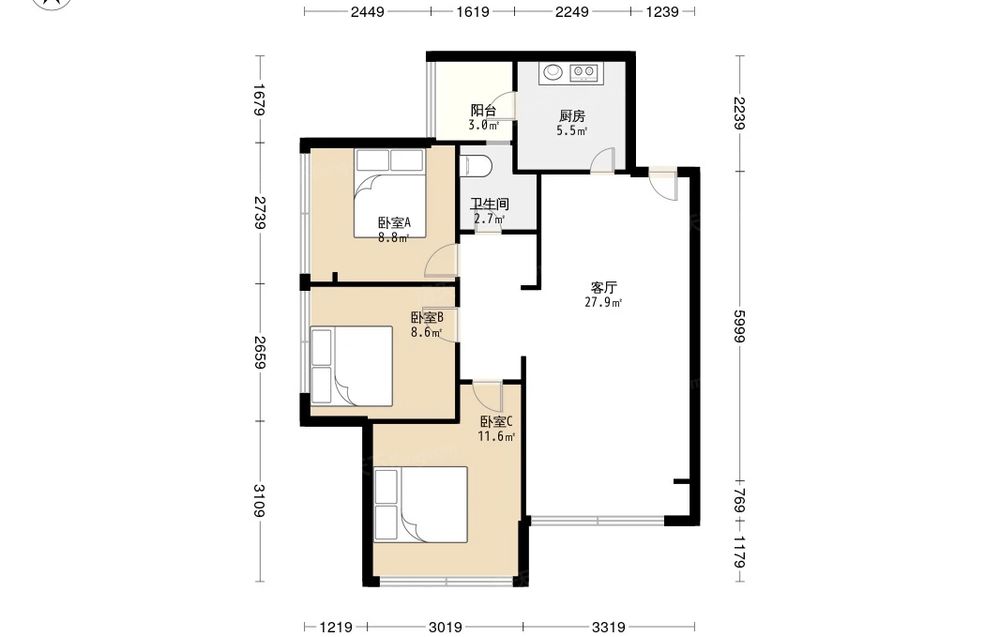 电建地产美立方 3室2厅 东南