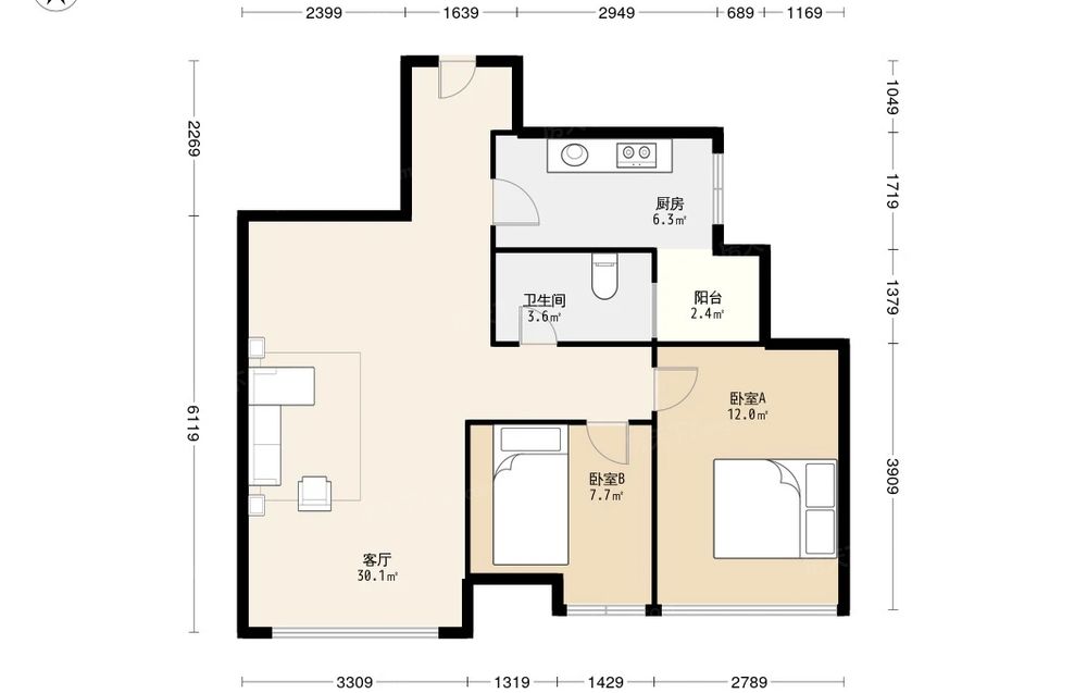 嘉通云玺 2室1厅 东南
