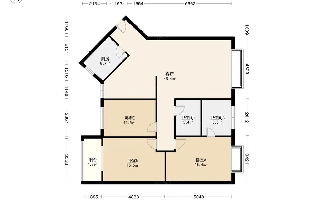 汇伦住宅 3室1厅 东