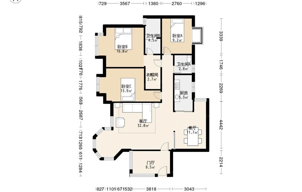 • 当前房源报价为:135.00万