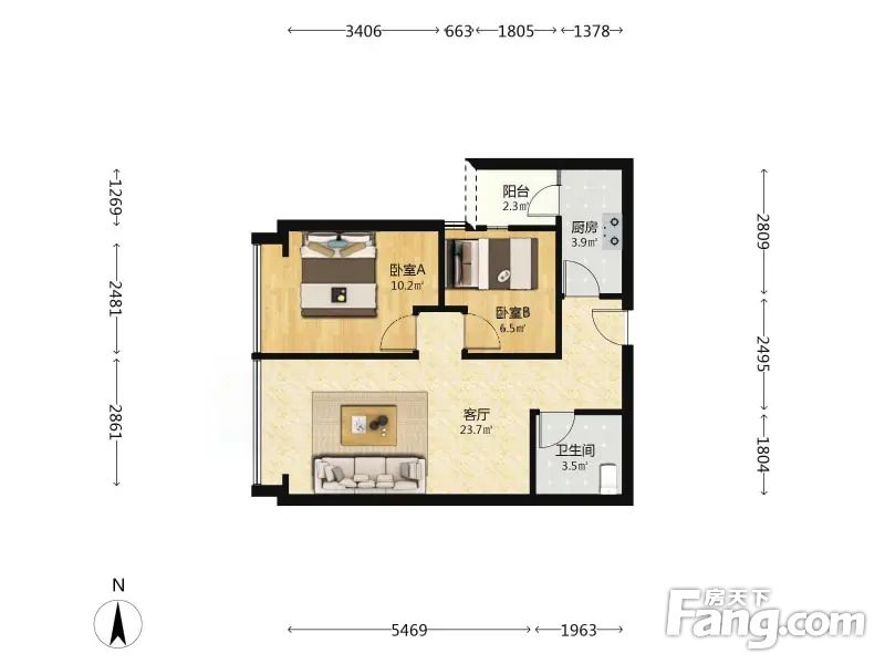 户型介绍小户型两居室,户型方正,开发商精装修,家具家电齐全,业主诚心出售