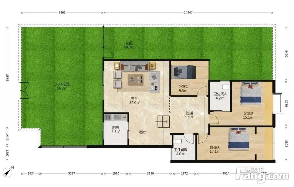 全中庭,前后带花园,不临街