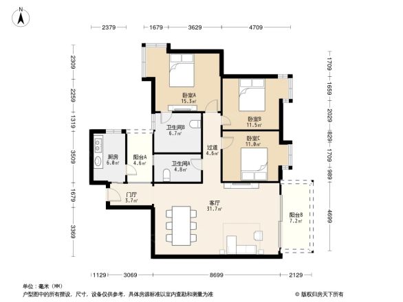 户型 | 3室2厅2卫(以实际为准) |